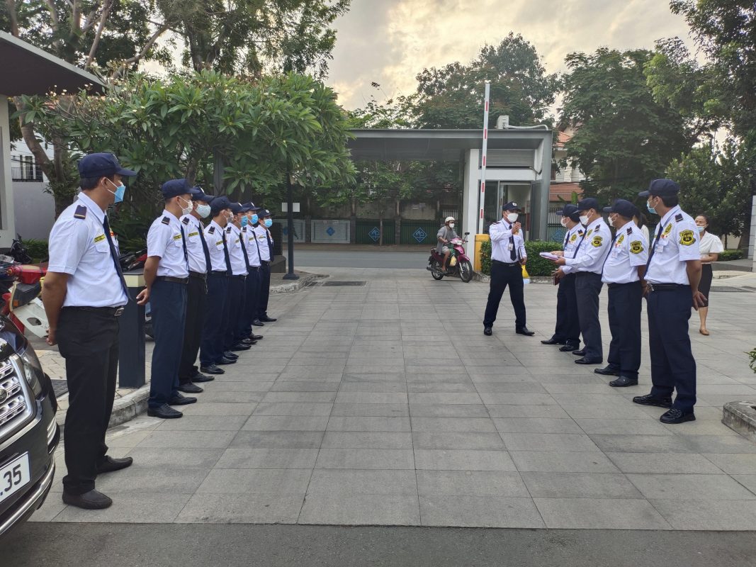 Hình ảnh đội ngũ nhân viên bảo vệ trước khi vào nhận bảo vệ mục tiêu